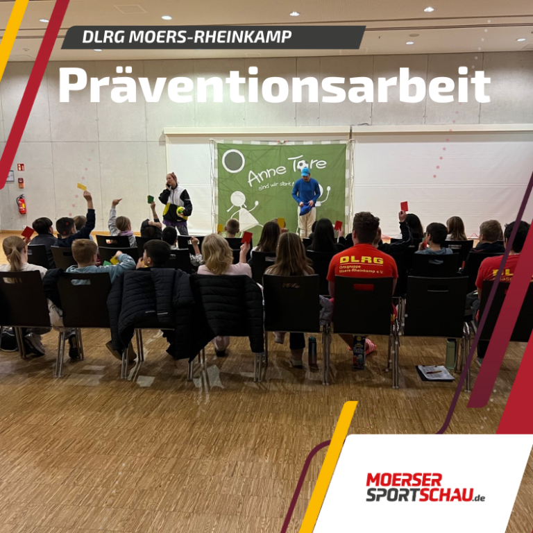 Im ENNI Sportpark Rheinkamp wurde heute das interaktive Theaterstück „Anne Tore – sind wir stark!“ aufgeführt – ein weiterer bedeutender Schritt der DLRG Ortsgruppe Moers-Rheinkamp e.V. auf dem Weg in das Qualitätsbündnis zum Schutz vor sexualisierter Gewalt im Sport. Die Schauspieler Rosalie Linneweber und Alex Welp brachten die Inhalte eindrucksvoll auf die Bühne und sensibilisierten Kinder im Alter von 8 bis 11 Jahren für Grenzverletzungen, Selbstbestimmung und ein starkes „Nein“. Von Beginn an wurden die jungen Zuschauer aktiv einbezogen: Mit roten, gelben und grünen Karten zeigten sie, wie sie die dargestellten Situationen aus verschiedenen Sportarten wahrnehmen. So wurden Themen wie Druck, unangemessene Nähe oder Überforderung nicht nur dargestellt, sondern direkt gemeinsam reflektiert – ein Ansatz, der Präventionsarbeit für Kinder besonders greifbar macht.