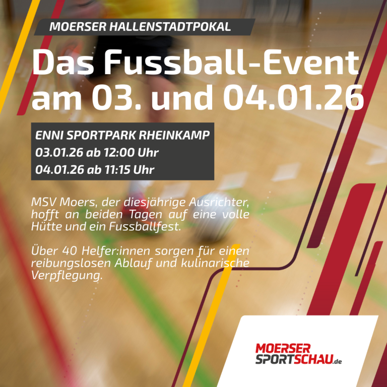 Der Jahreswechsel ist kaum verklungen, da schlägt das Fußballherz der Stadt bereits im höchsten Takt: Am 03. und 04. Januar 2026 wird der ENNI-Sportpark wieder zum brodelnden Zentrum des Moerser Fußballs. Der Moerser Hallenstadtpokal steht vor der Tür – ein Turnier, das weit mehr ist als nur ein sportlicher Wettbewerb. Es ist Emotion, Tradition und gelebter Zusammenhalt.